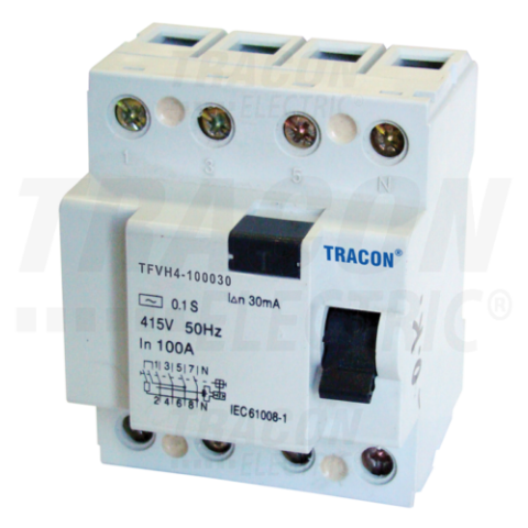 1 kép TRACON Áram-védőkapcsoló, nagyáramú, 4 pólusú100A, 30mA, 6kA, AC