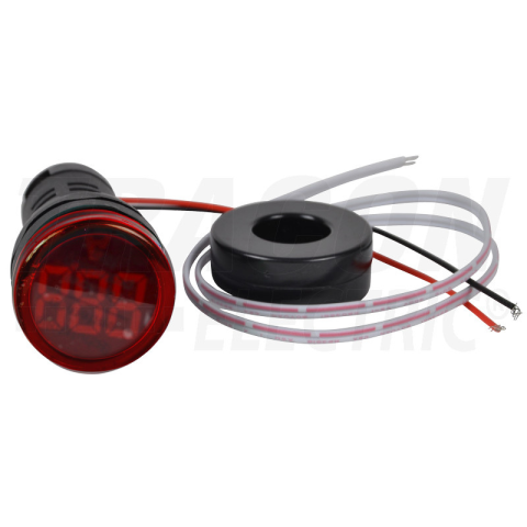 Árammérő, LED jelzőfény, piros 1-100A, d=22mm NYG3-AR Tracon