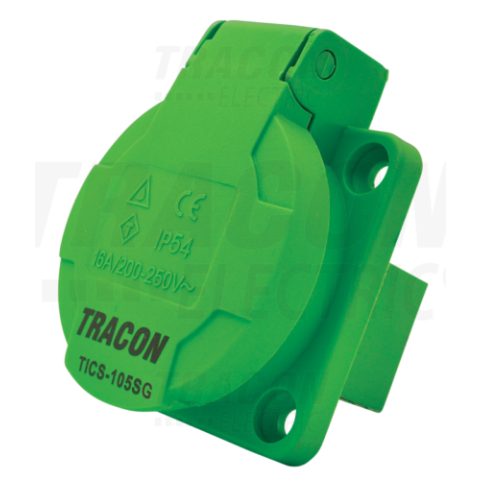 1 kép TRACON Beépíthető csatlakozóaljzat, oldalsó védőérintkezővel, kerek16A, 250V, 2P+E, IP44 (SCHUKO)