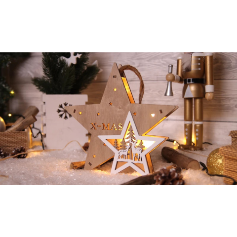 TRACON CHRHS7WW LED karácsonyi csillag,fa,elemes Timer 6+18h, 7LED, 3000K, 2xAAA karácsonyfa izzósor 1 kép