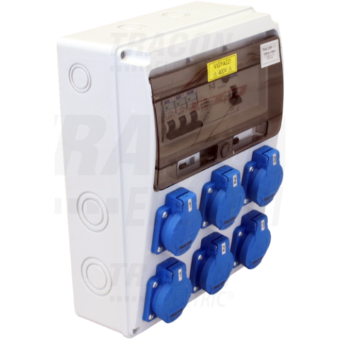 1 kép TRACON Csatlakozó doboz védelemmel, vezetékezett, készre szereltProt.:RCCB,MCB,Out:6×SCHUKO