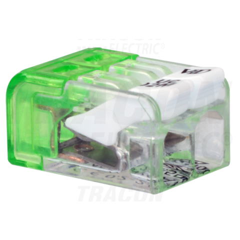 1 kép TRACON Csavar nélküli vezetékösszekötő, nyitható átlátszó0,2-2,5mm2, 24A, 450VAC 2P