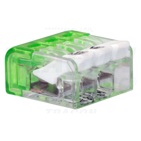 1 kép TRACON Csavar nélküli vezetékösszekötő, nyitható átlátszó0,2-2,5mm2, 24A, 450VAC 3P