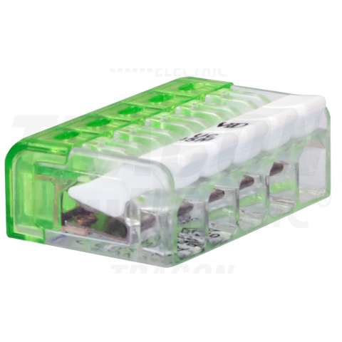 1 kép TRACON Csavar nélküli vezetékösszekötő, nyitható átlátszó 0,2-2,5mm2, 24A, 450VAC 5P
