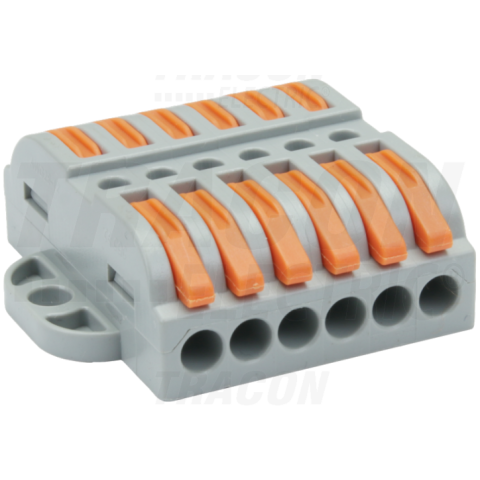 1 kép TRACON Csavar nélküli vezetékösszekötő, toldó, nyitható0,5-4mm2, 32A, 400VAC 6P
