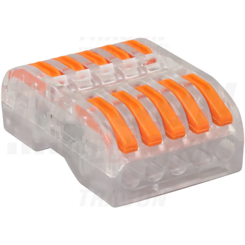 Csavar nélküli vezetékösszekötő, toldó nyitható,átlátszó 0,5-4mm2, 32A, 5pólusú, OVOTT55 Tracon