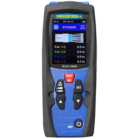 Digitális kábelhosszmérő, 2% pontosság, 99 adat memória, vezetőképesség mérés PAN KLM 2000 Pancontrol Kábelhossz mérés 5 - 3000 m Réz és alumínium kábelekhez Impulzus reflexiós mérés Memóriában mérési érték Színes kijelző Digitális kijelző 3000 Hát