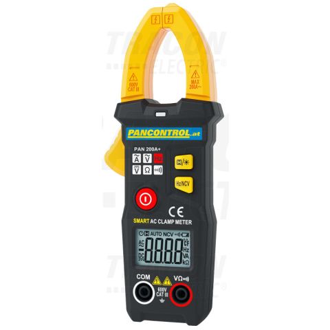 Digitális lakatfogó AC PAN 200A+ Pancontrol***(Egyenfeszültség: 0,1mV-600V, Váltakozó feszültség: 0,1mV-600V, Váltakozó áram: 1 mA - 200A, Ellenállás: 1 ohm - 6 M ohm , Pontosság: 0,5-2,5%, Frekvencia: 40 Hz - 1000 Hz, Akusztikus folytonosság vizsgál