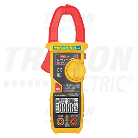 Digitális lakatfogó AC/DC PAN 600AD+ Pancontrol***(Egyenfeszültség: 1mV-600V, Váltakozó feszültség: 1mV-600V, Egyenáram: 10mA-600A, Váltakozó áram: 10 mA - 600A, Ellenállás: 1 ohm - 10 Mohm , Pontosság: 0,5-3,5%, Frekvencia: 0,1 Hz - 1000 Hz, Akuszti