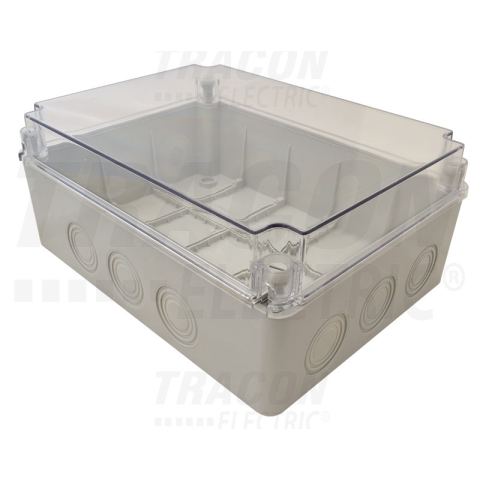 1 kép TRACON Elektronikai doboz, világos szürke, átlátszó fedéllel 310×230×130, IP67