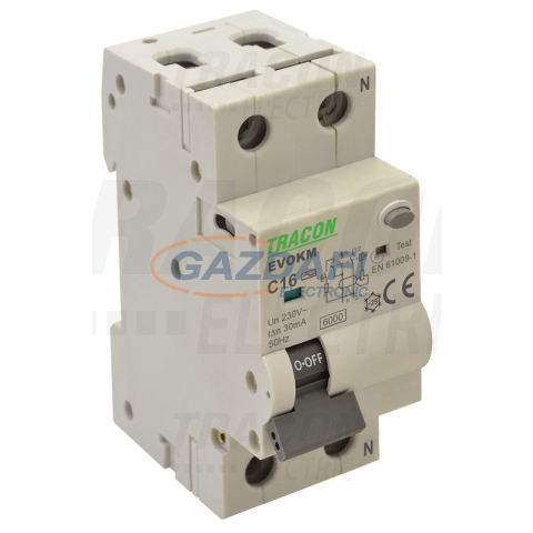 1 kép TRACON EVOKM2B1603 Kombinált védőkapcsoló, 2P, 2modul, B karakterisztika 16A, 30 mA, 6kA, AC