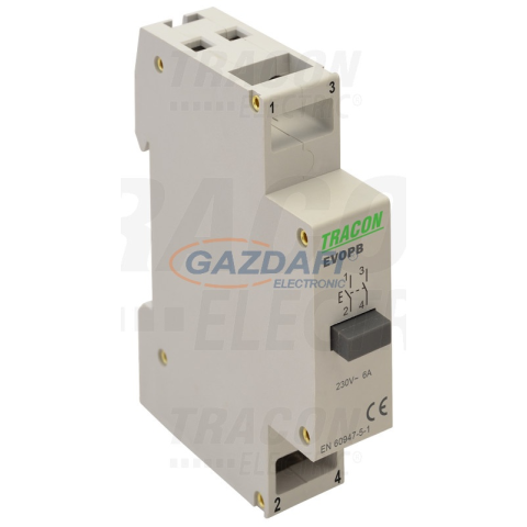 1 kép TRACON EVOPB Moduláris nyomógomb 230V, 50Hz, 2NO, Ith:16A, AC-14, Ie:6A