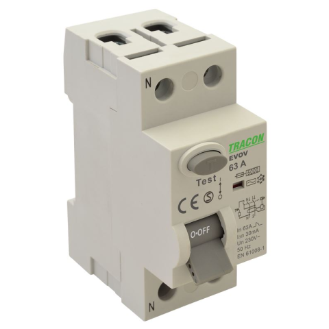 TRACON EVOV2P2503 2P 25A 30mA 6kA áram-védőkapcsoló (EVOV2P2503)