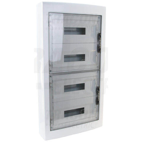 Kiselosztó falonkívüli 4soros, 72 modulos átlátszó ajtóval IP40 sín nélkül, sík ajtóval EDFKS-18/4 Tracon