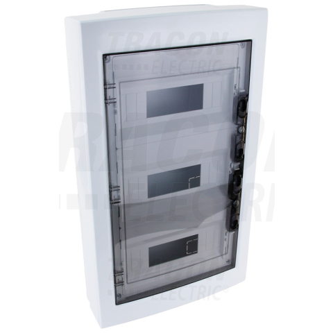Kiselosztó falonkívüli 3soros, 36 modulos átlátszó ajtóval IP40 sín nélkül, sík ajtóval EDFKS-12/3 Tracon