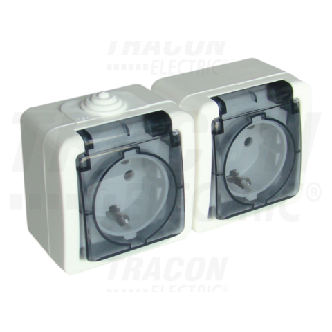 1 kép TRACON Falon kívüli kettős csatlakozóaljzat, csapos védőérintkező16A/250VAC, IP54,