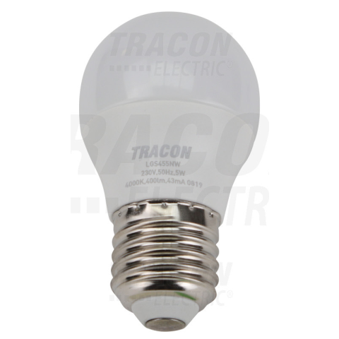 Gömb burájú LED fényforrás 5W, 4000K, E27, 450lm, 180fok, G4 SAMSUNG chippel LGS455NW Tracon