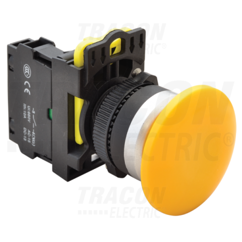 1 kép TRACON Gombafejű nyomógomb, sárga1×NO, 5A/230V AC-15, 40mm, IP65