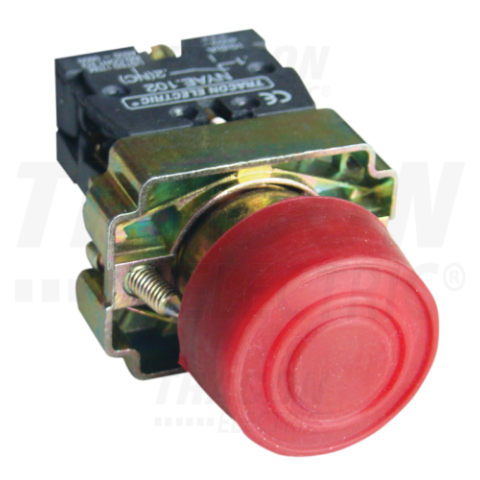 1 kép TRACON Gumiburkolatos nyomógomb, fémalapra szerelt, piros1×NC, 3A/240V AC, IP55