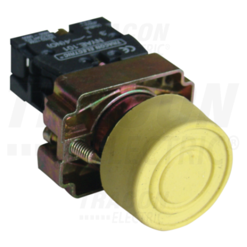 1 kép TRACON Gumiburkolatos nyomógomb, fémalapra szerelt, sárga1×NO, 3A/240V AC, IP55