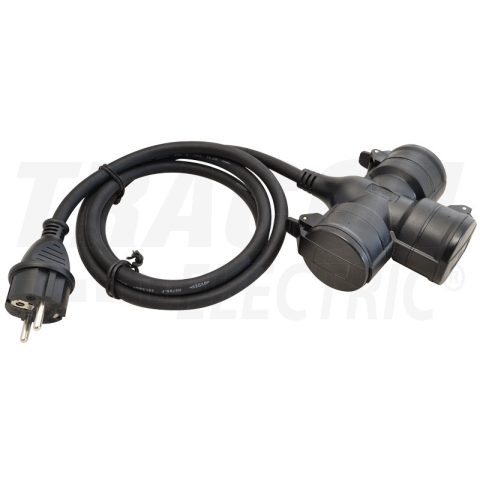 Hordozható 3-as csatlakozóaljzat gumikábellel 16A, 3XSCHUKO, max. 3680W, IP44, 1,5mKE3 Tracon