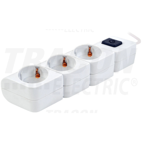 1 kép TRACON Hordozható elosztósáv kapcsolóval, fehér 1,4m