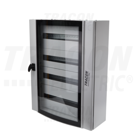 1 kép TRACON Ívelt biztonsági üvegajtós fémelosztószekrény600×750×200mm / 96M (4×24 mod)