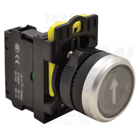 1 kép TRACON Jelölt nyomógomb, fekete, (fehér nyíl)1×NO, 5A/230V AC-15, IP65