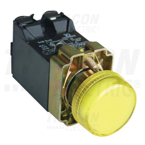 1 kép TRACON Jelzőlámpa, fémalap, sárga, trafóval, izzó nélkül 3A/400V AC, IP42, NYGI6