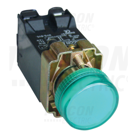 1 kép TRACON Jelzőlámpa, fémalap, zöld, trafóval, izzó nélkül 3A/400V AC, IP42, NYGI6