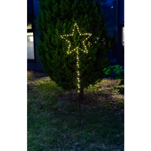 1 kép TRACON Karácsonyi LED csillag, elemes, 6+18h, 80LED, 3000K, IP44, 3xAA