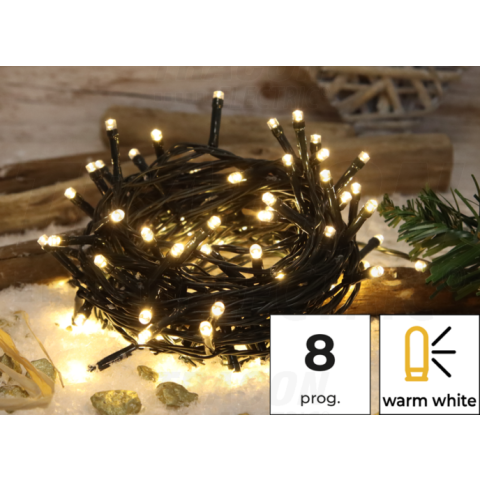 1 kép TRACON Karácsonyi programozható fényfüzér, kültéri/beltéri230VAC, 5+20M, 200LED, 6W, 2600-2700K, IP44