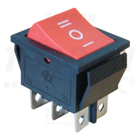 1 kép TRACON Készülékkapcsoló, háromállású, piros, I-0-II felirattal16(6)A, 250V AC