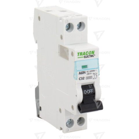 1 kép TRACON Kismegszakító, 1+N pólus, C karakterisztika 1+N, C32, 6kA