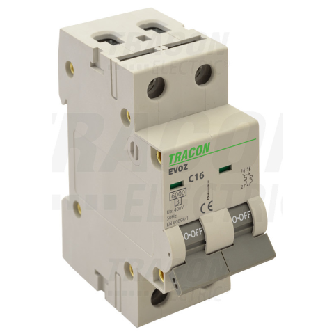 1 kép TRACON Kismegszakító, 2 pólus, B karakterisztika 4A, B, 2P, 6kA