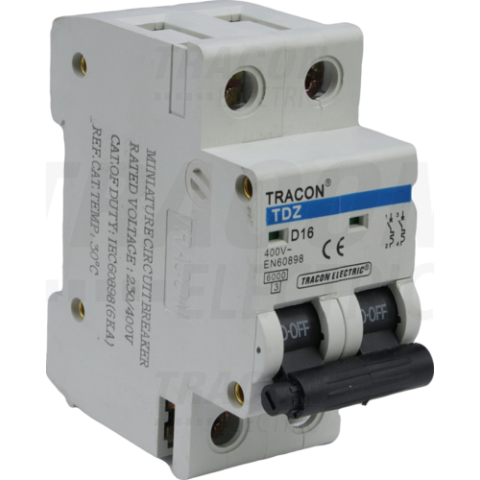 1 kép TRACON Kismegszakító, 2 pólus, D karakterisztika25A, 6kA