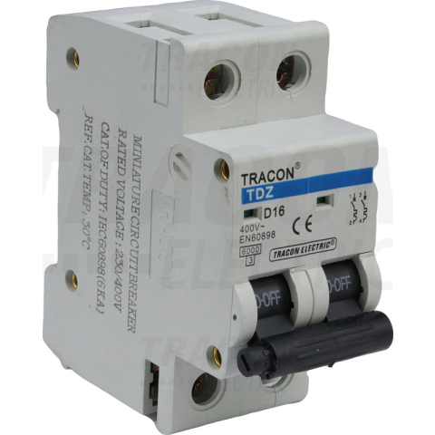 1 kép TRACON Kismegszakító, 2 pólus, D karakterisztika 2A, 6kA
