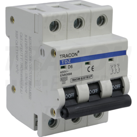 1 kép TRACON Kismegszakító, 3 pólus, D karakterisztika2A, 6kA