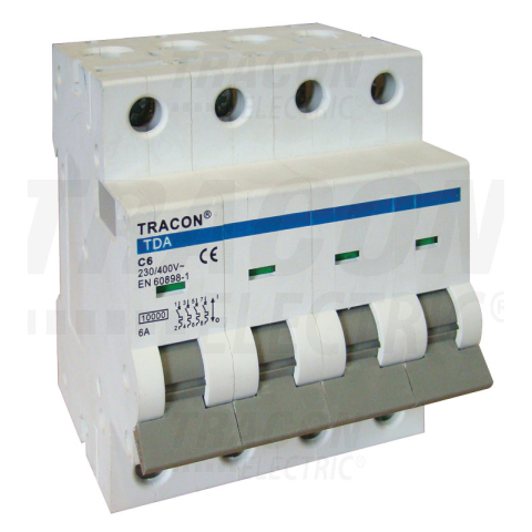 1 kép TRACON Kismegszakító, 4 pólus, C karakterisztika 1A, C, 4P, 10kA