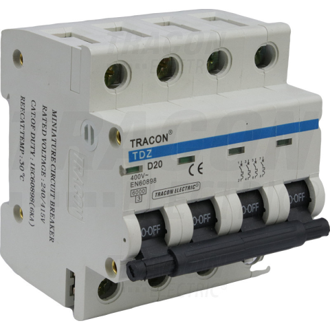 1 kép TRACON Kismegszakító, 4 pólus, D karakterisztika 4A, 6kA