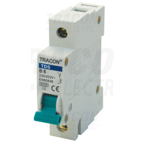 1 kép TRACON Kismegszakító, színes karral, 1 pólus, D karakterisztika25A, 6kA