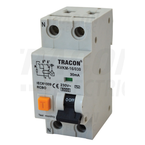 1 kép TRACON Kombinált védőkapcsoló, 2P, 2 modul, B karakterisztika 20A, 30 mA, 6kA, AC