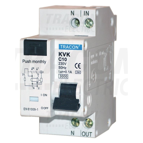 1 kép TRACON kombinált védőkapcsoló, 2P, 2 modul, C karakterisztika 16A, 30mA, 3kA, AC