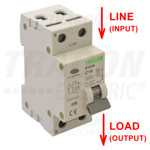 1 kép TRACON Kombinált védőkapcsoló, 2P, 2modul, C karakterisztika16A, 30 mA, 4,5kA, AC