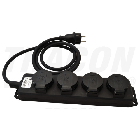 Kültéri eloszósáv, fekete H07RN-F, 3G1.5, 3m, 4×SCHUKO KE4-3M Tracon