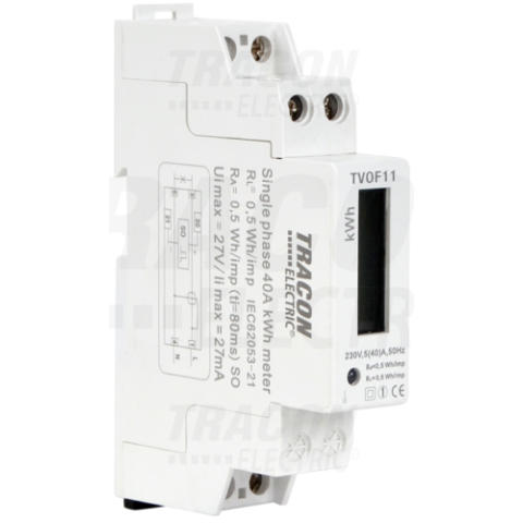 1 kép TRACON LCD kijelzésű fogyasztásmérő,közvetlen, 1 fázisú, 1 modul230VAC / 5(40)A