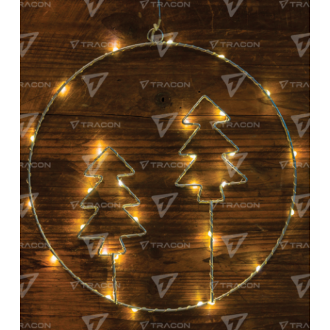 1 kép TRACON LED karácsonyi ablakdísz,fenyőfa,elemes Timer 6+18h, 30LED, 3000K, 3xAA