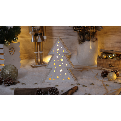 1 kép TRACON LED karácsonyi fenyő, fa, elemesTimer 6+18h, 4LED, 3000K, 2xAAA