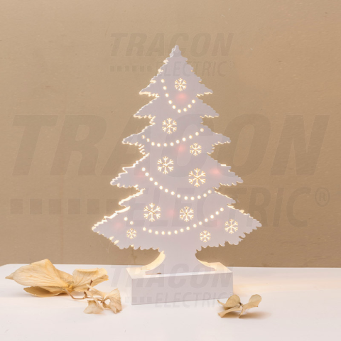 TRACON LED karácsonyi fenyő, fehér, fa, elemes