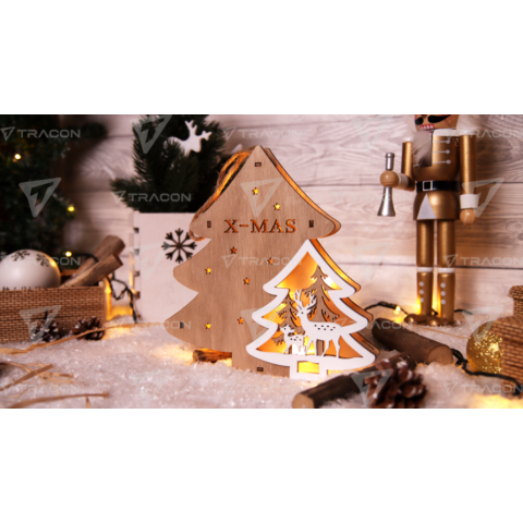 1 kép    TRACON LED karácsonyi fenyőfa,fa,elemes Timer 6+18h, 7LED, 3000K, 2xAAA